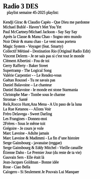 MUSIQUE – SUR RADIO 3 DES – CHANSON FRANCAIS