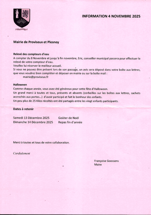 Un vin d’honneur sera offert en salle des fêtes à l’issue de la cérémonie.