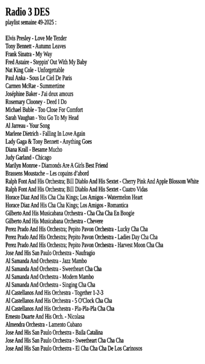 MUSIQUE – SUR RADIO 3 DES – CHANSON FRANCAIS