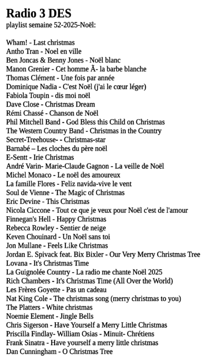 RADIO ASSOCIATIVE LOCALE DEPARTEMENT AISNE – ARDENNE -MARNE-HAUT DE FRANCE -52- NOËL 2025 radio3des: 90.9 FM