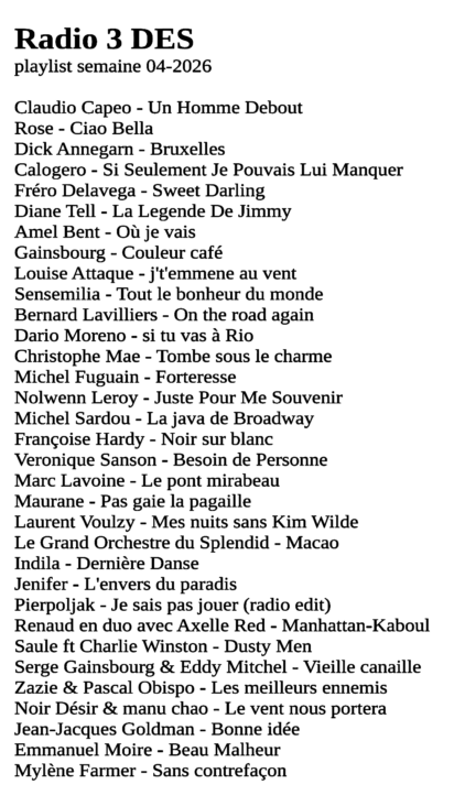 MUSIQUE – SUR RADIO 3 DES – CHANSON FRANCAIS