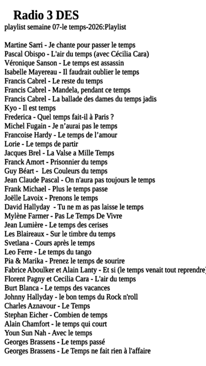 MUSIQUE – SUR RADIO 3 DES – CHANSON FRANCAIS
