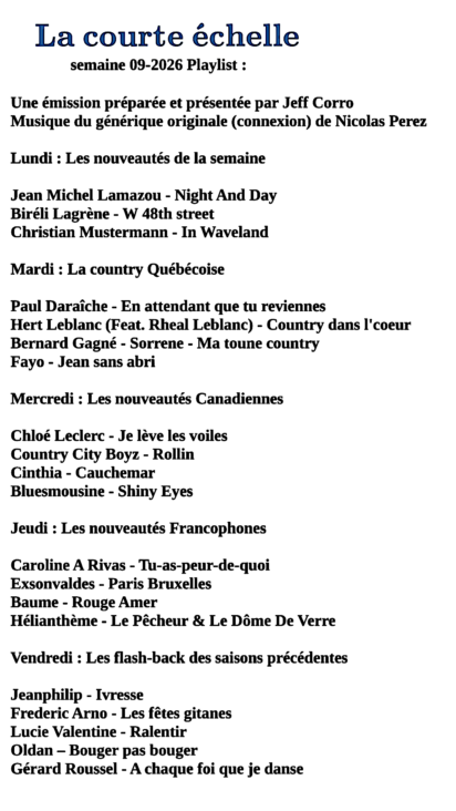 Bonjour Amis Danseurs,Nous vous présentons nos meilleurs vœux de bonheur et santé pour cette nouvelle année 2027 remplie de joie, de musique et de danse !A très bientôt de se revoir sur la piste ! Amitiés Musicales