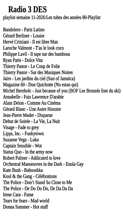 MUSIQUE – SUR RADIO 3 DES – CHANSON FRANCAIS