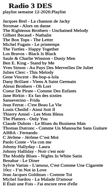 MUSIQUE – SUR RADIO 3 DES – CHANSON FRANCAIS