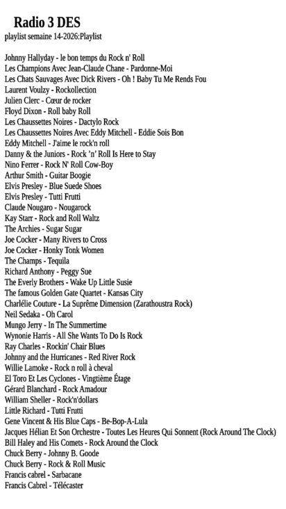 MUSIQUE – SUR RADIO 3 DES – CHANSON FRANCAIS