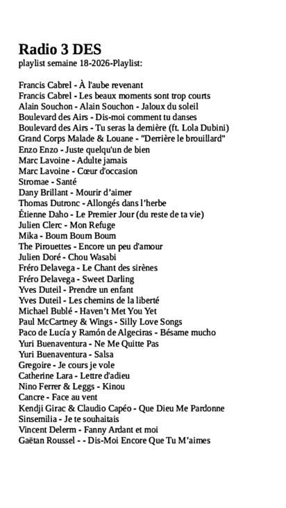 MUSIQUE – SUR RADIO 3 DES – CHANSON FRANCAIS